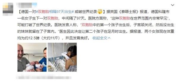 近日,德國的一對雙胞胎剛剛出生就打破了一項世界紀錄:雙胞胎姐妹的...